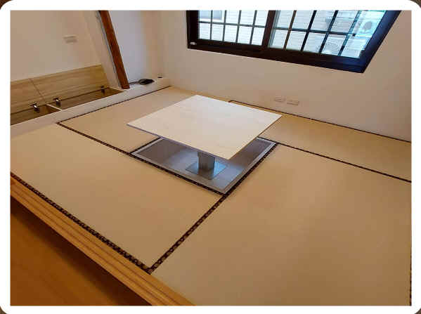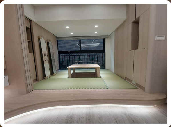 傳統日式禪風照古法以勾丁方式呈現排列,製作方式長向左右兩側會搭上疊緣這重要元素更顯出日式風格。
